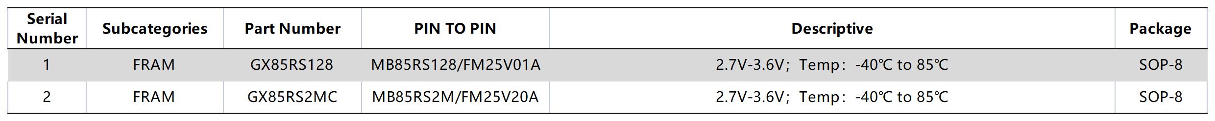 GXSC FRAM (PIN TO PIN Fujitsu/Cypress)